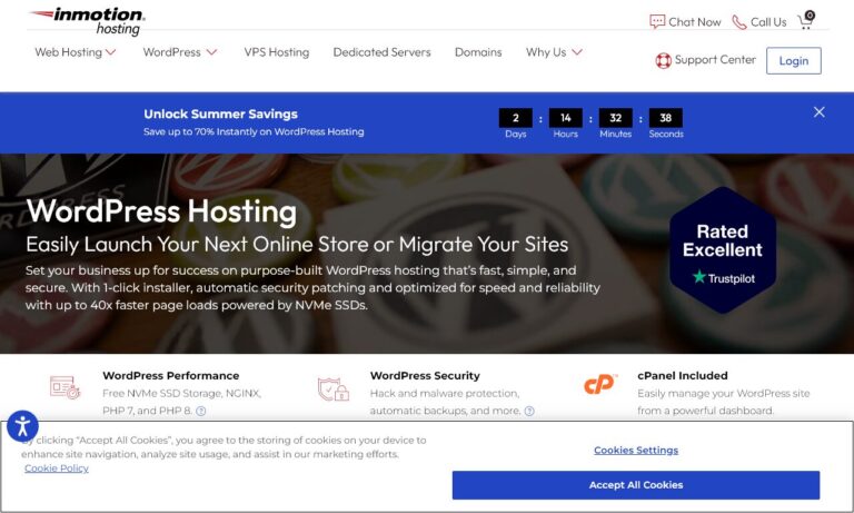 InMotion Hosting offers robust WordPress hosting solutions with a focus on performance and customer support. Their plans include free SSL, daily backups, and malware protection. While not the cheapest option, InMotion provides good value for its feature set.